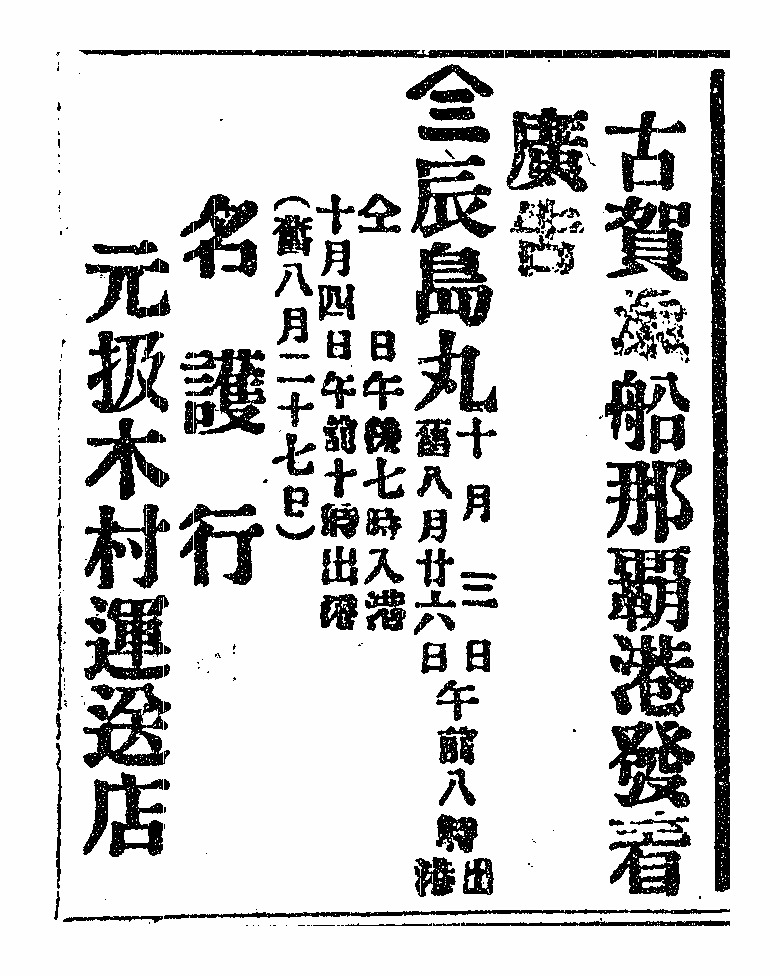 古賀滊船那覇港發着廣告